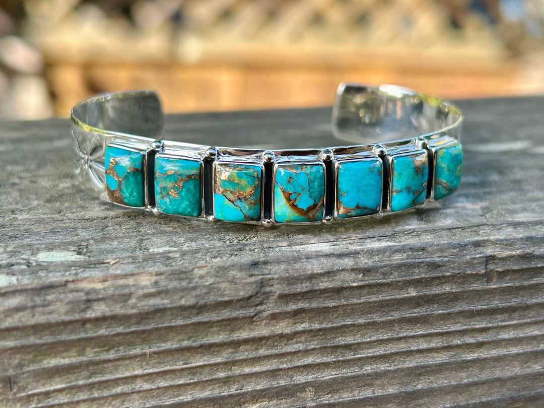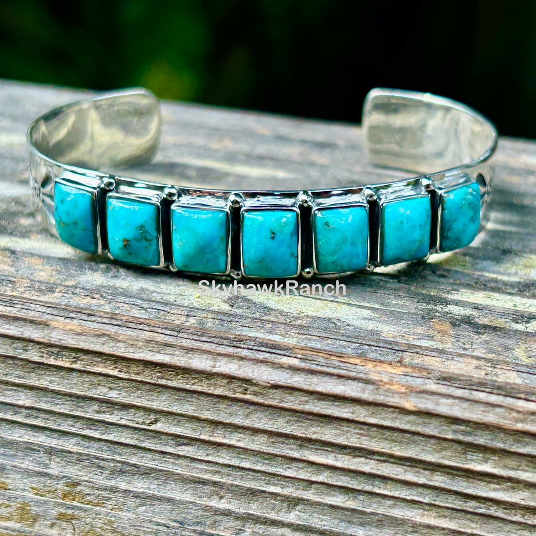 Turquoise Cuff Bracelet - Sterling Silver, Adjustable, Southwestern Jewelry