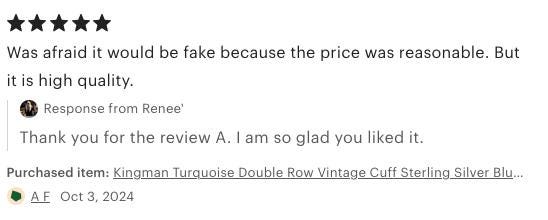 These are gorgeous vintage Kingman Cuffs. 2 rows of beautiful turquoise stones with earthtone matrix. Square cut stones bezelled into individual settings. The turquoise color in these cuffs is really pretty. There is natural patina in the silver that I have decided to leave giving them a authentic aged look. The HaDa Collection is Western inspired, handmade artisan jewelry. These pieces are crafted using sterling silver and the finest natural stones