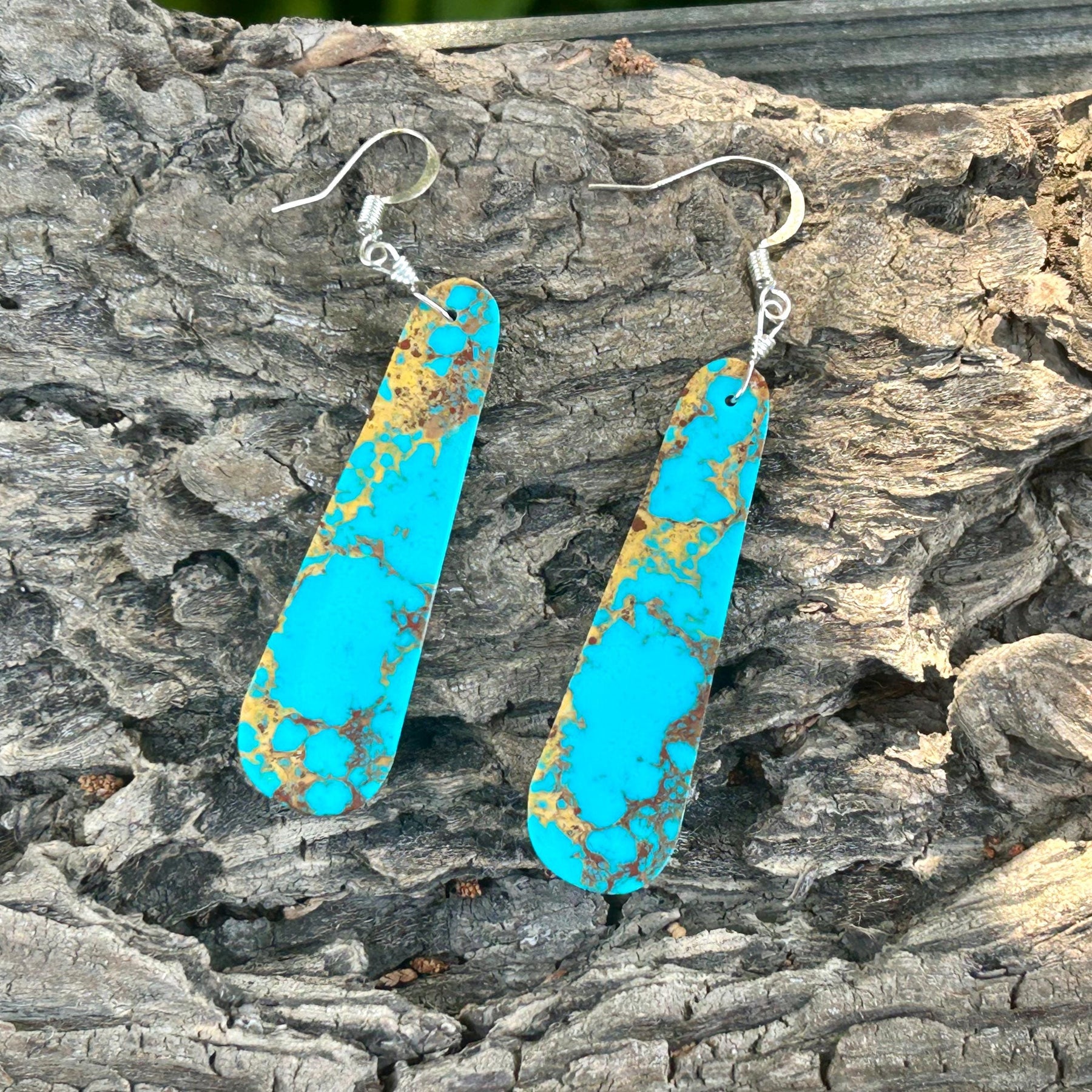 Genuine Turquoise Slab Earrings, 2" Blue Turquoise Earrings, Statement Earrings, Handmade Turquoise Slab Earrings, Kingman Turquoise