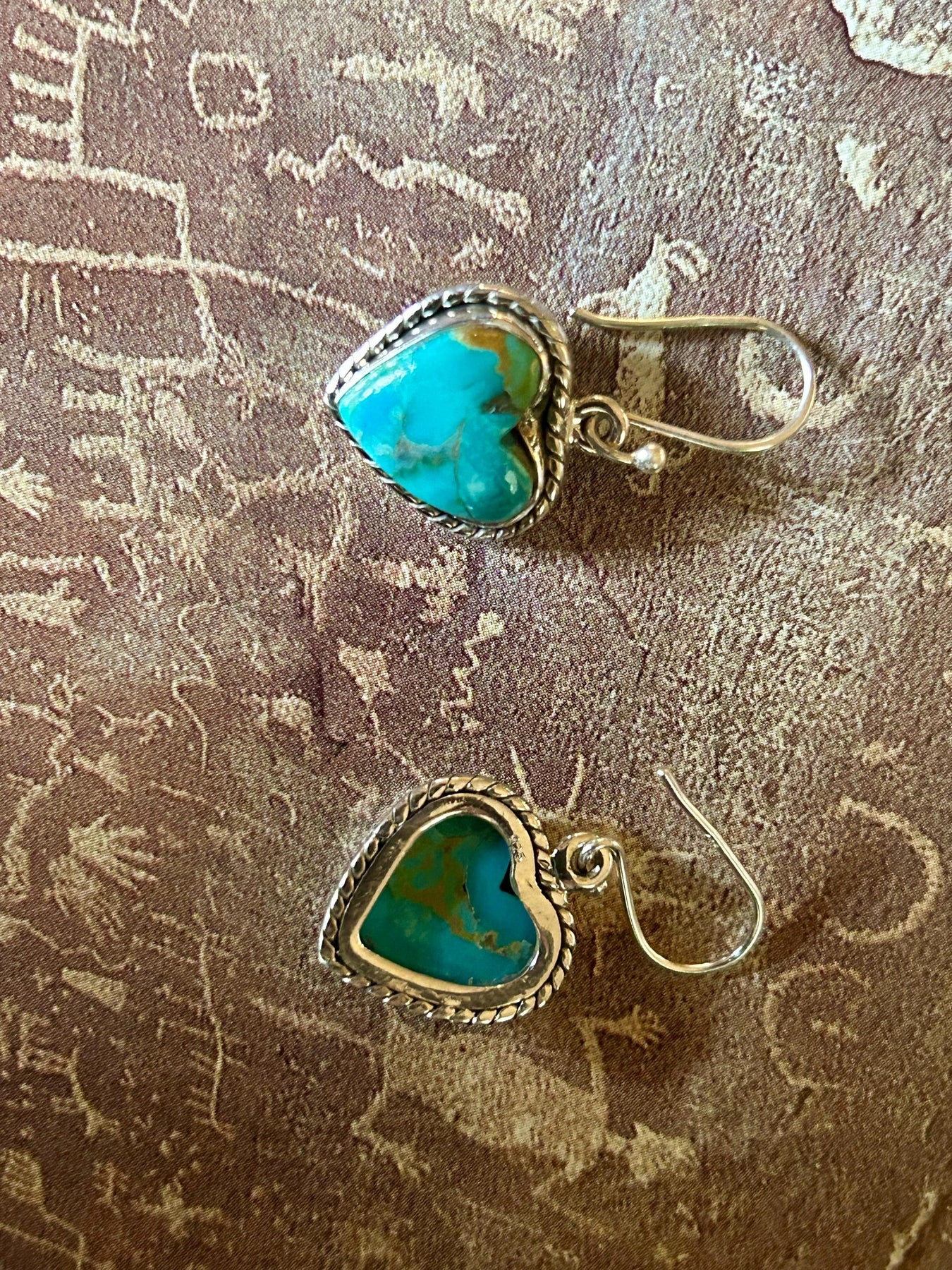 Add a touch of southwestern beauty to your style with these handmade turquoise copper matrix heart earrings. Each pair is carefully crafted with genuine turquoise, showcasing unique patterns of matrix against the blue-green turquoise stone.