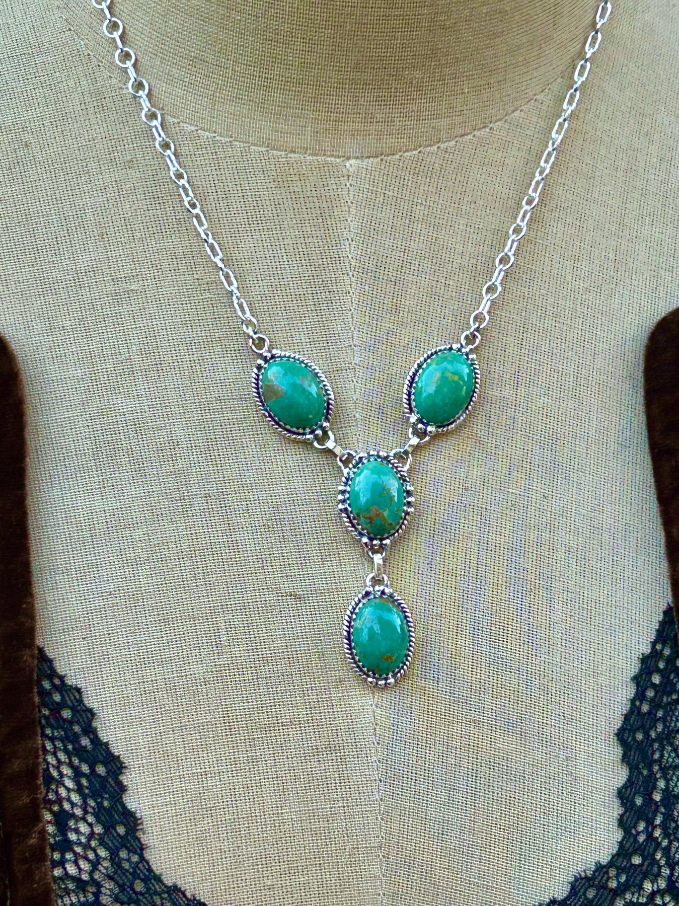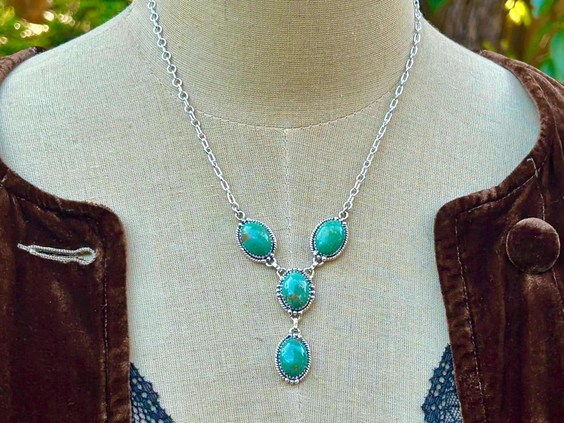 Handmade Turquoise Necklace, Kingman Turquoise - Sterling Silver A lariat necklace is so on trend right now. They are so feminine, they make a sweet statement. This one is made of Kingman Turquoise and Sterling Silver.