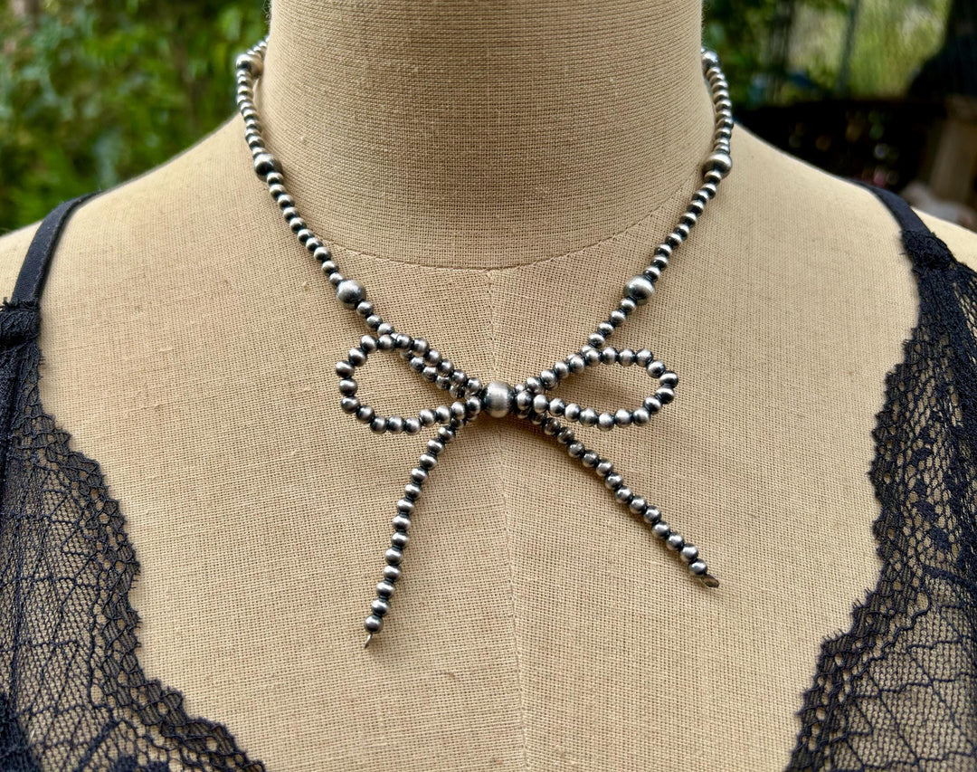 Sterling Silver Bow Necklace: Sterling Silver, Handmade