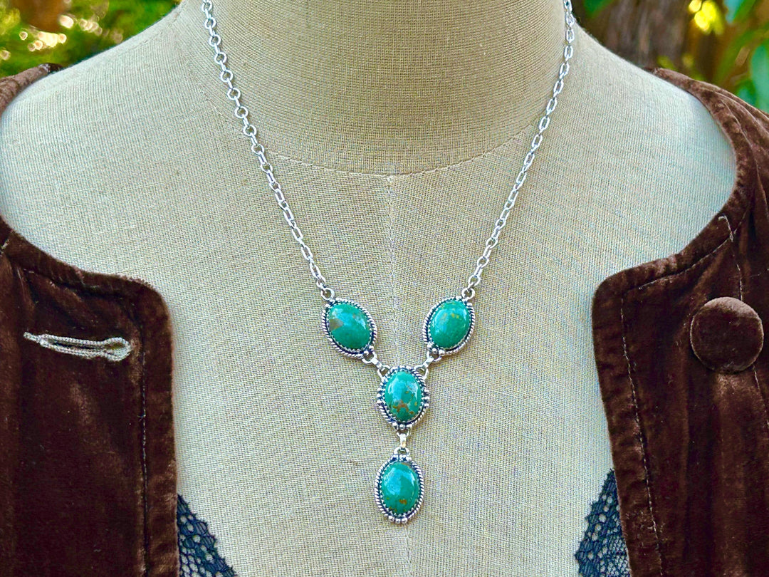 Sterling Silver Turquoise Necklace - Lariat Southwestern Design