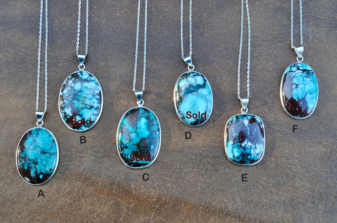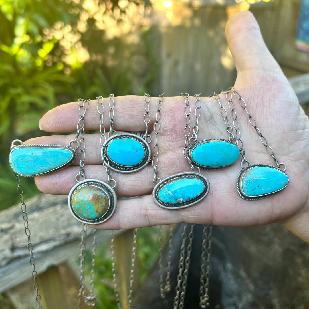 Turquoise Pendant Necklace: Sterling Silver Chain