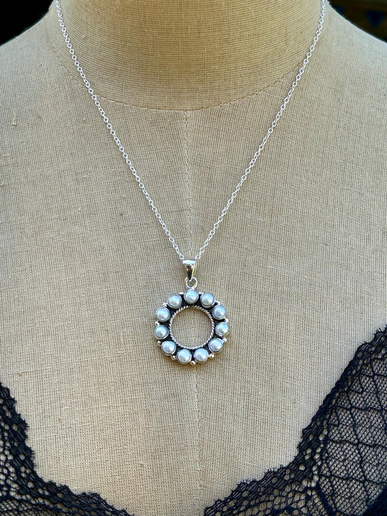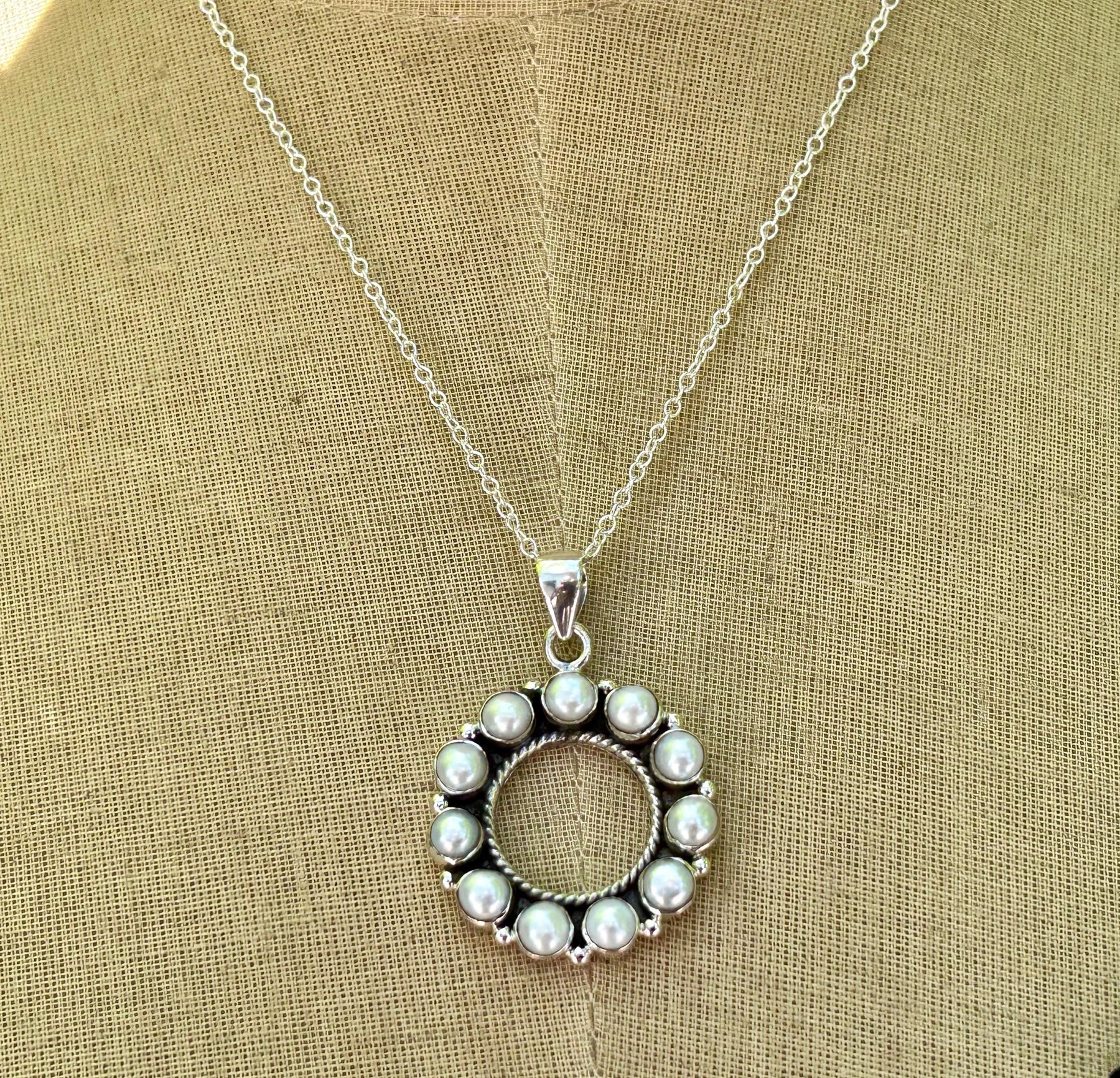 Genuine Circle of Pearls Pendant Necklace Sterling Silver Pearl Pendant Freshwater Pearl Necklace Genuine Cabachon Pearls 925 Silver