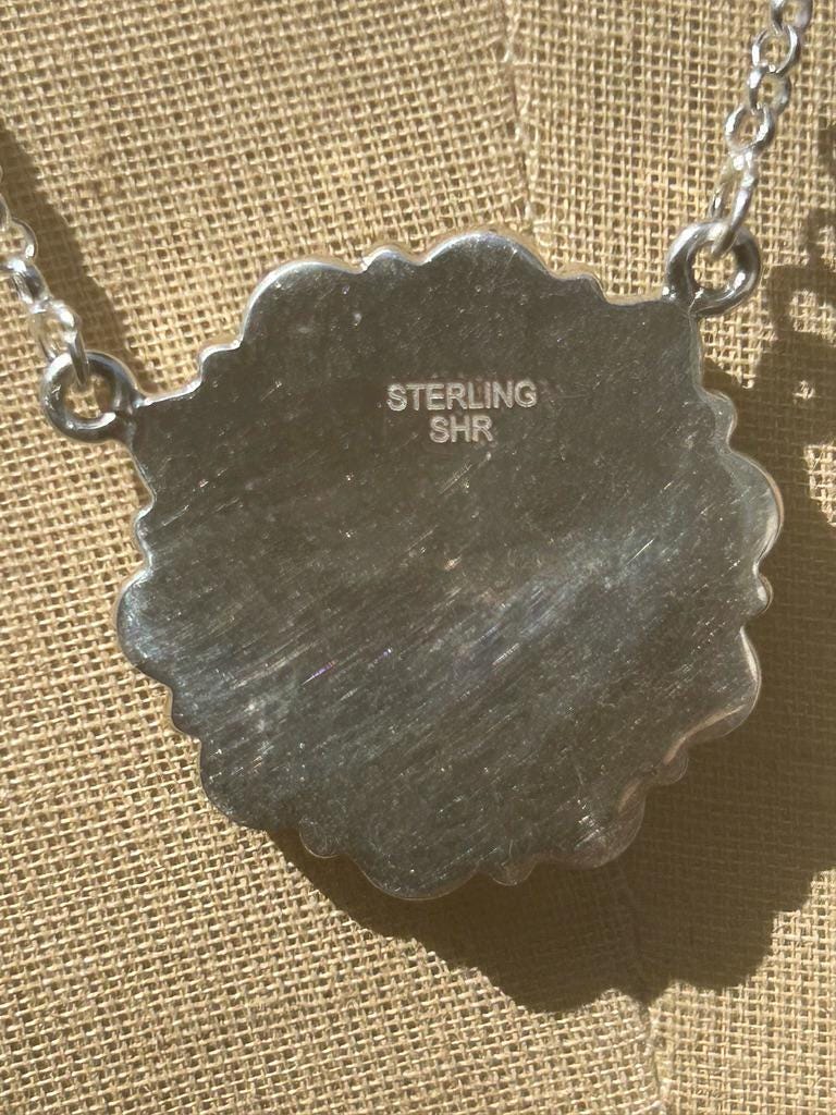 Genuine Kingman Turquoise Cluster Pendant. Sterling Silver Turquoise Flower Pendant. These are such well made Turquoise Cluster Necklaces. Beautiful colors of Kingman Turquoise with lots of earthtone matrix in each petal. This necklace would delight any girl in your life. Be it mom, daughter, Auntie, Grandma, Sister or yourself. Nice weight to these too and they are a perfect size at 1.5" around.