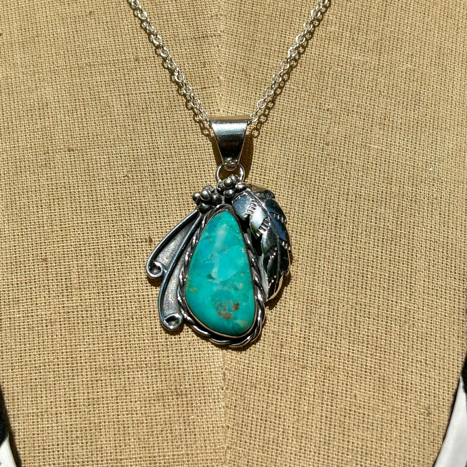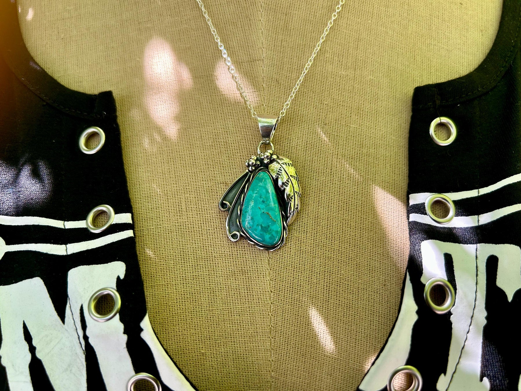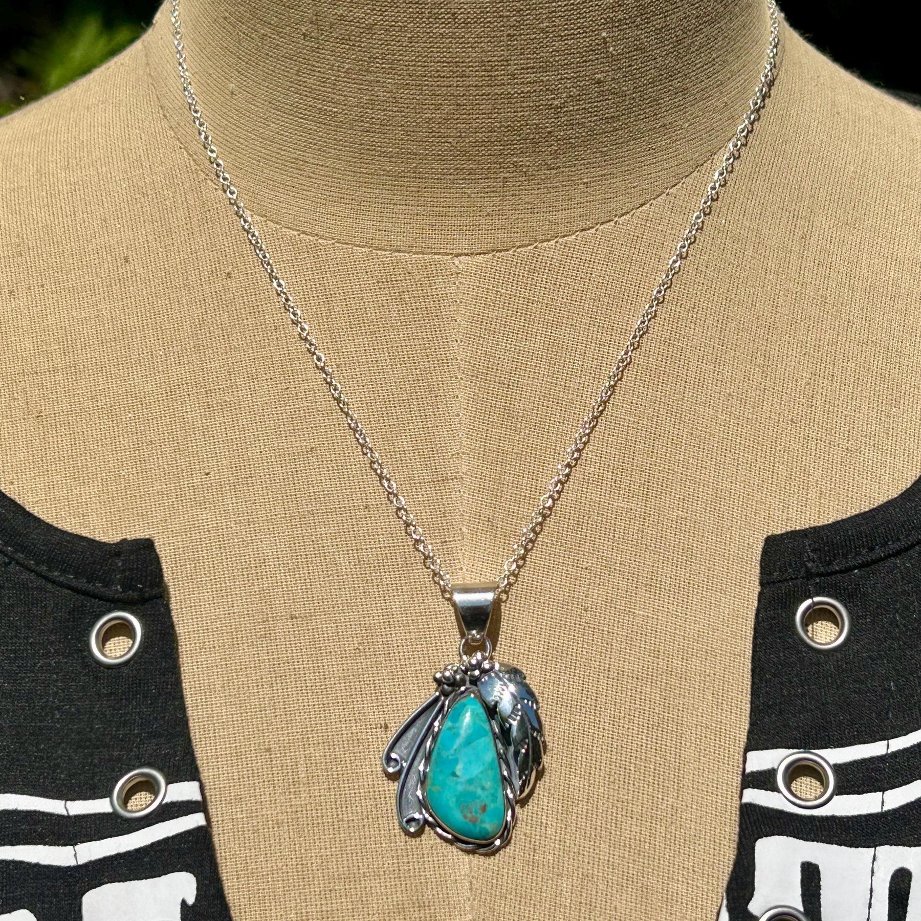 Turquoise Feather Pendant Necklace: Sterling Chain, Southwestern Design