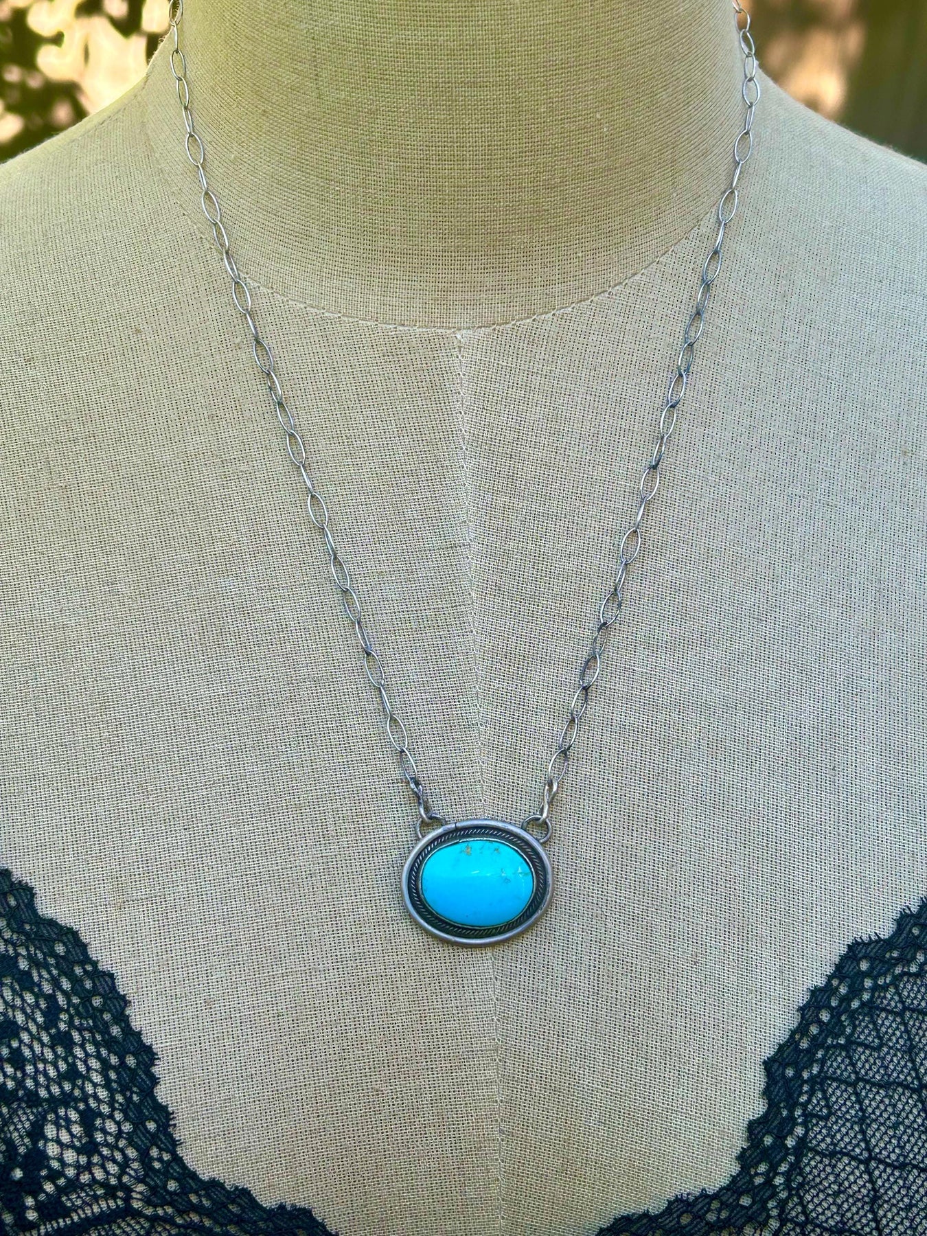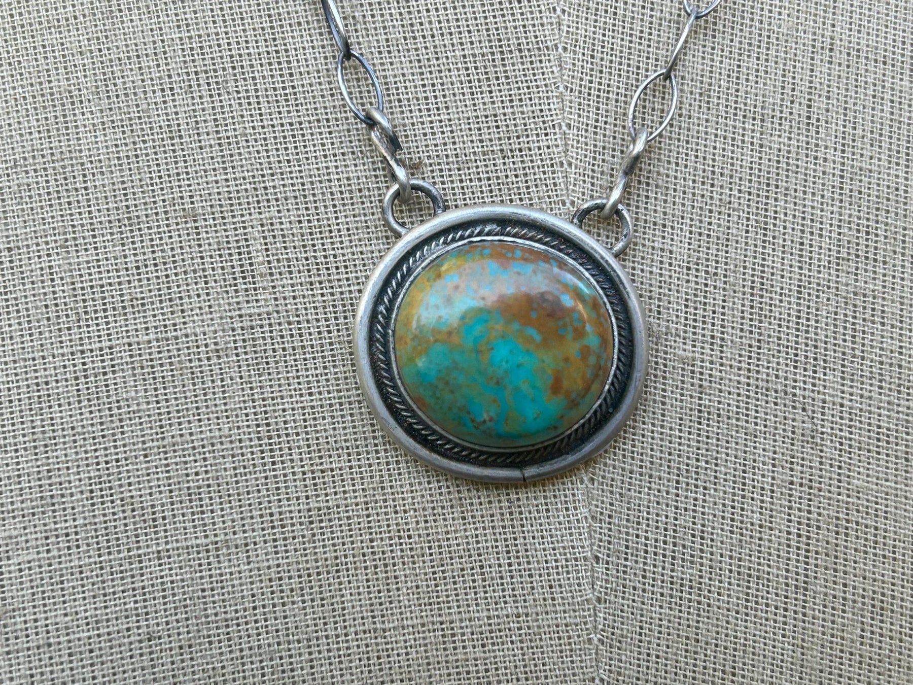 Kingman Turquoise Navajo Pendant Necklace: Sterling Silver, Southwestern Design, Handmade