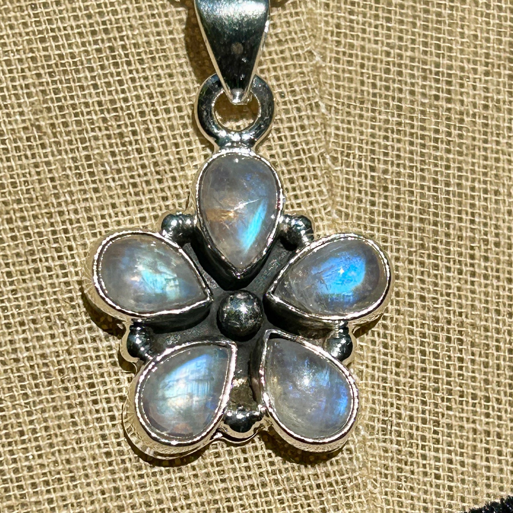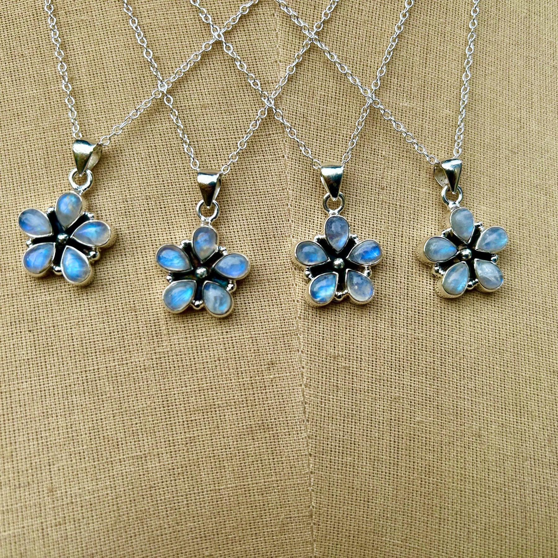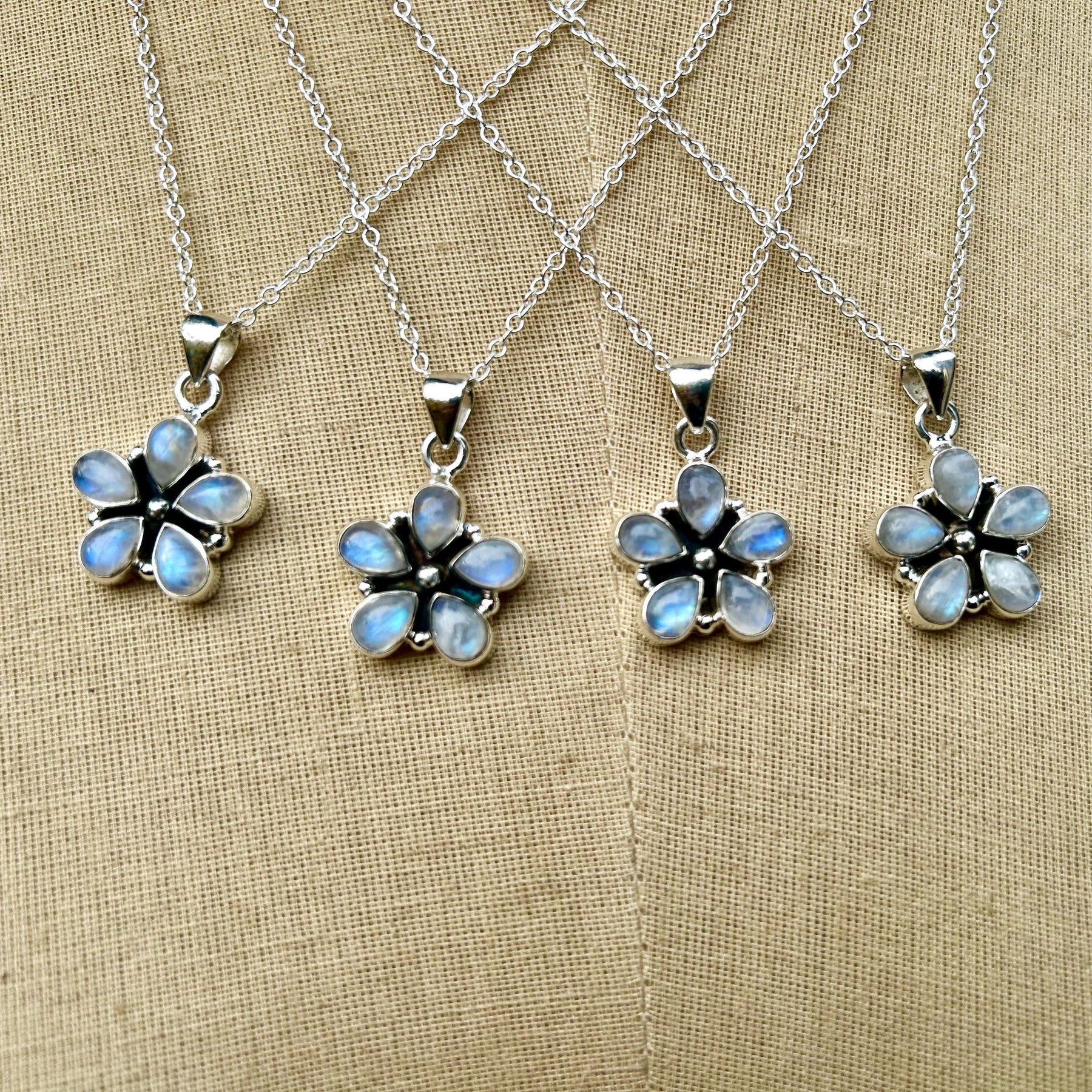 Rainbow Moonstone Flower Pendant/Necklace Sterling Chain Included. There is something about moonstone that is just magical. Put it in the sun and the magic begins. Match this necklace with my moonstone ring... https://www.etsy.com/listing/1752625831/rainbow-moonstone-ring-sterling-silver?