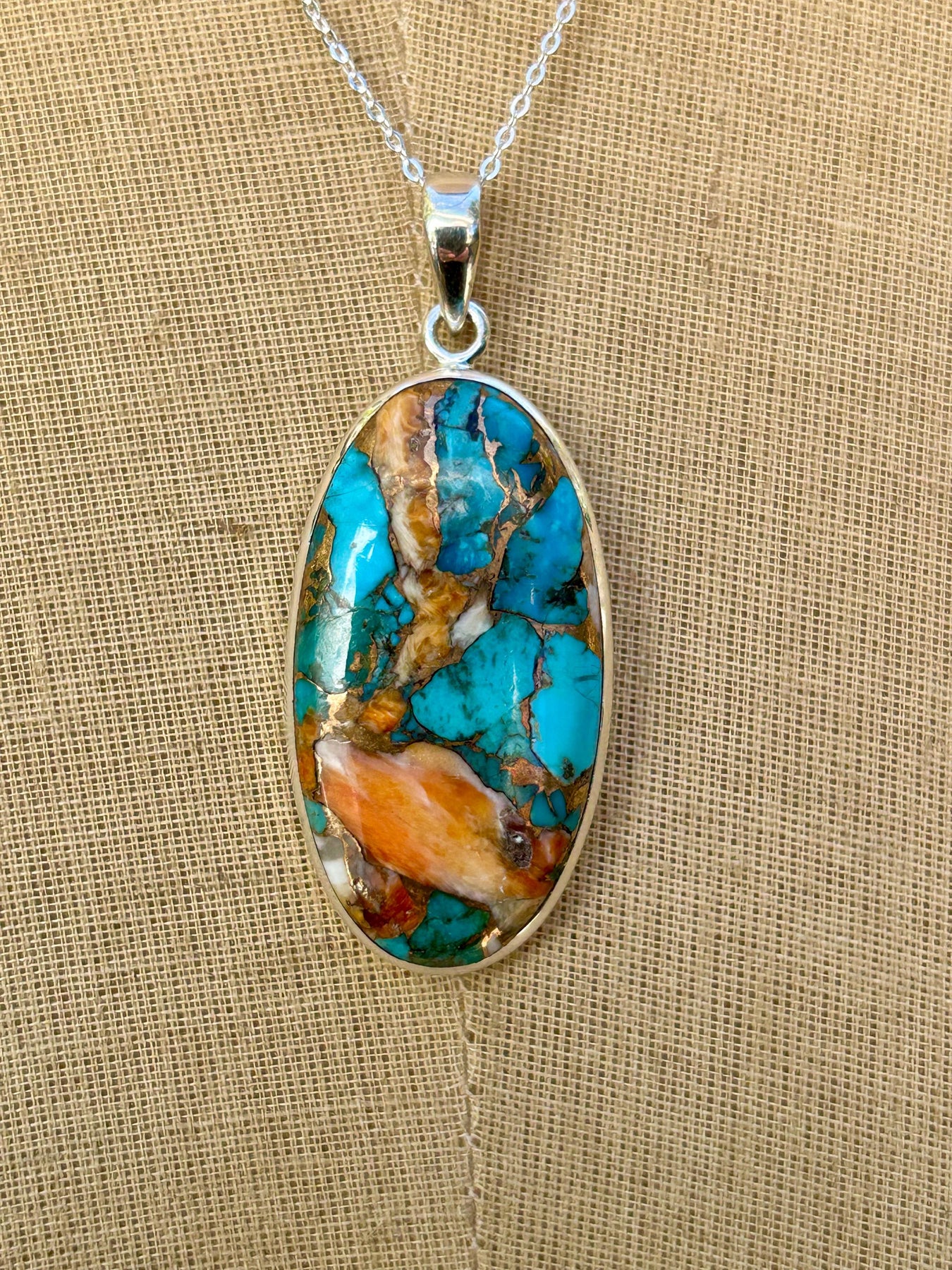 Turquoise Spiny Oyster Pendant Necklace: Sterling Silver Chain