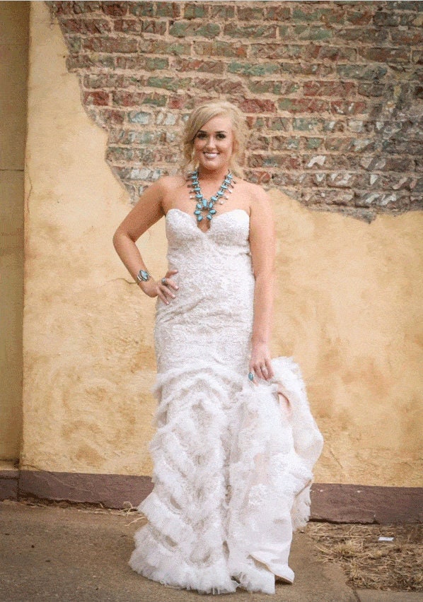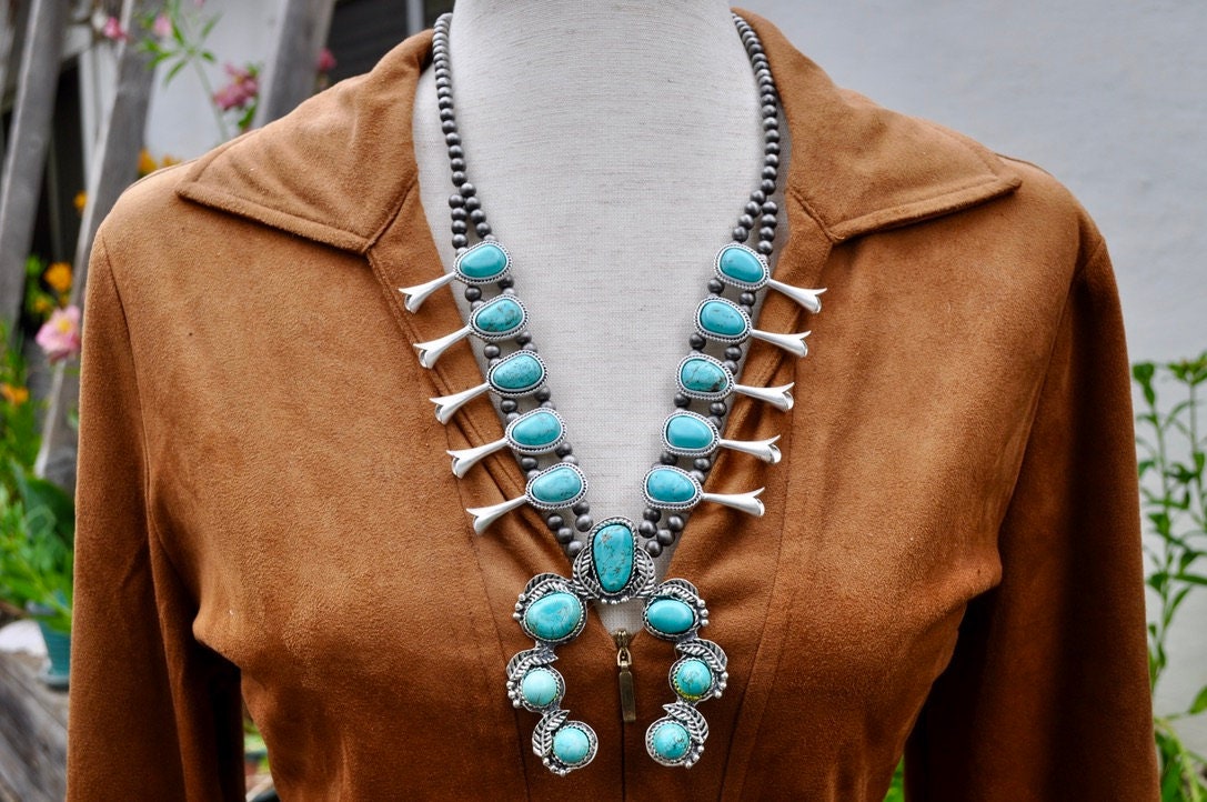Turquoise Squash Blossom Necklace Western Southwestern Cowgirl