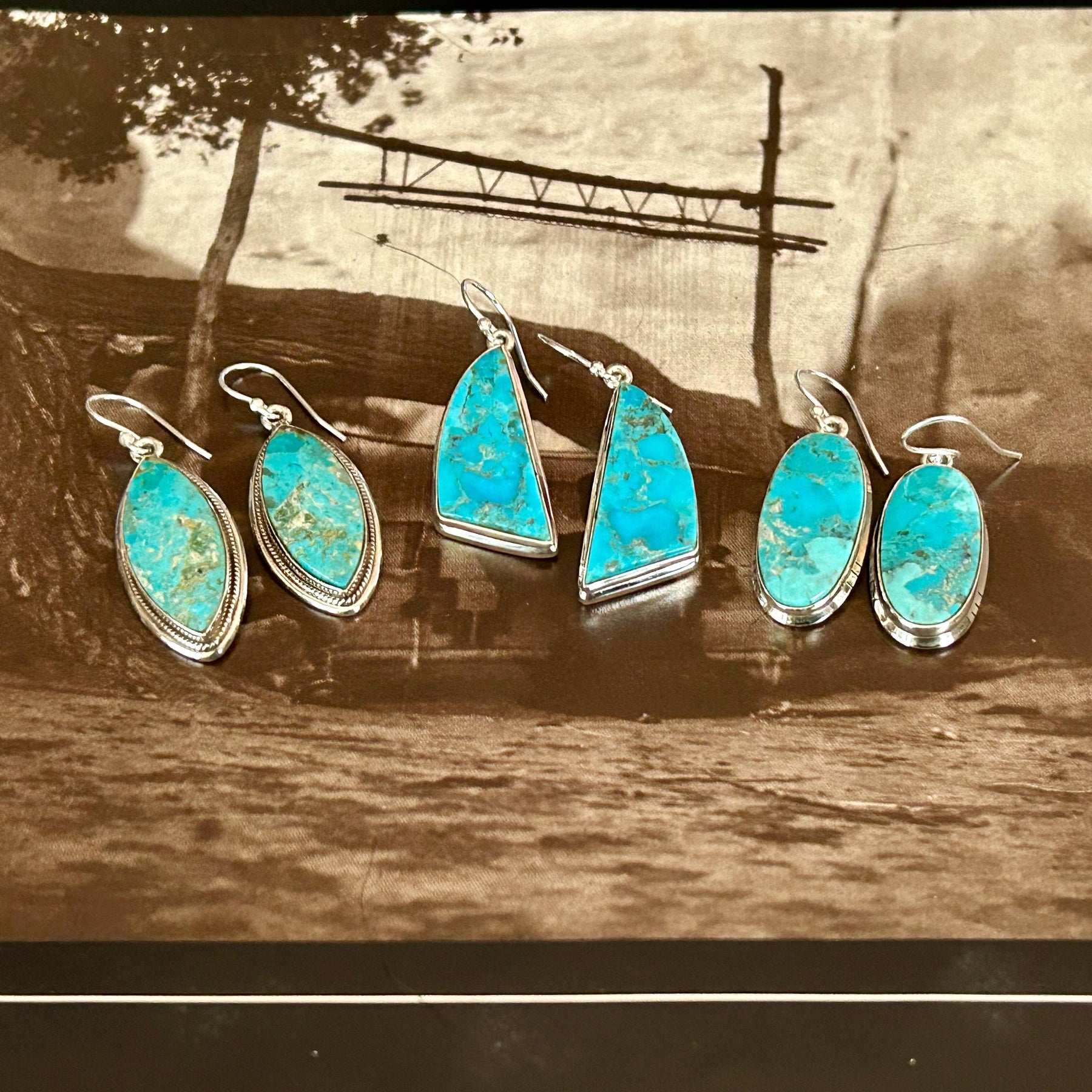 Genuine Kingman Dangle Earrings Sterling Silver Southwestern Handmade