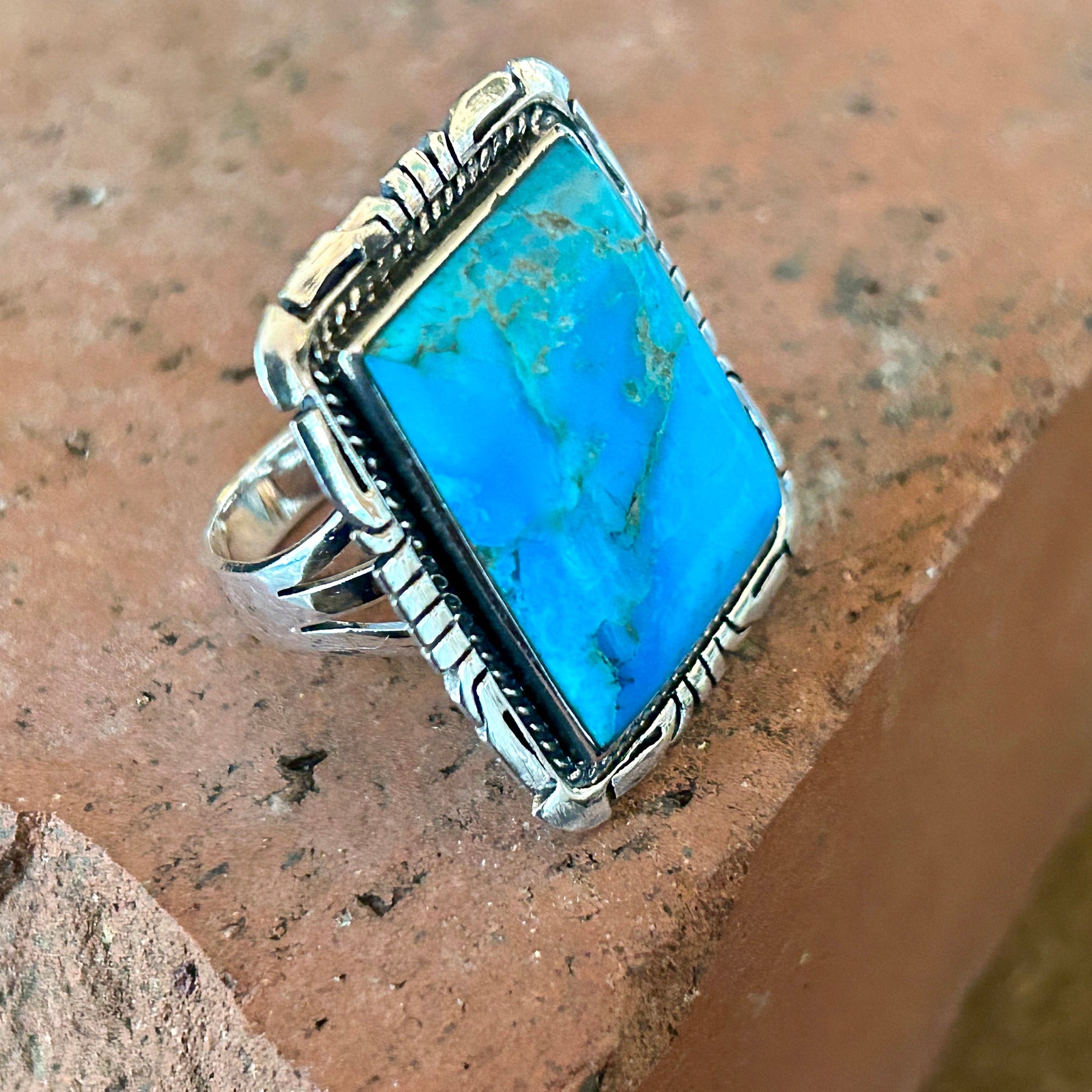 Genuine Turquoise Men's Ring Sterling Silver Ring Statement Ring. Now this is a beautiful ring. Big and Bold...a real statement piece. If you like people to see your turquoise when you walk in a room then this piece is for you. Beautiful stones and earthtone matrix throughout this gorgeous ring.