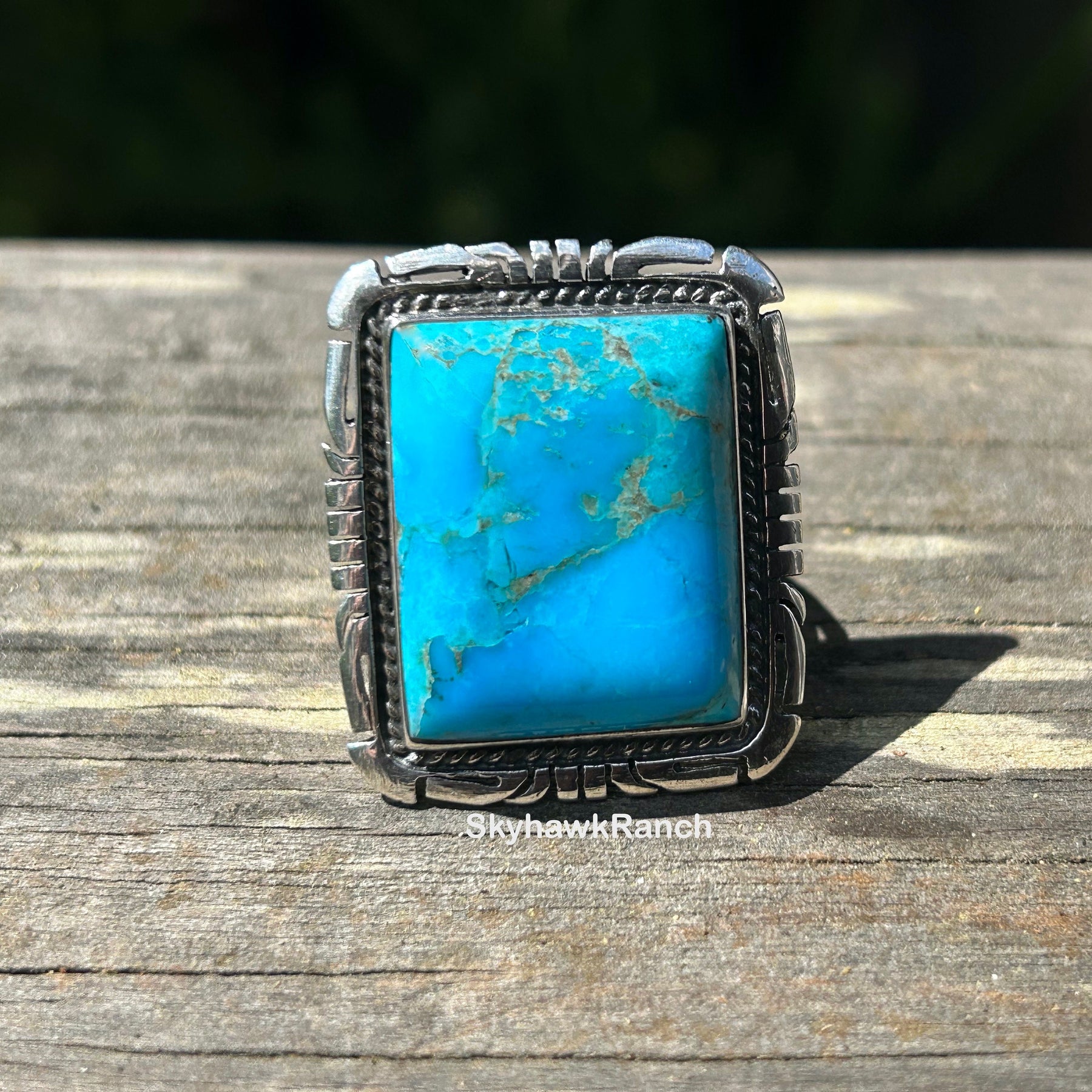 Genuine Turquoise Men's Ring Sterling Silver Ring Statement Ring Mens Ring Turquoise Gemstone Ring Gift for Dad